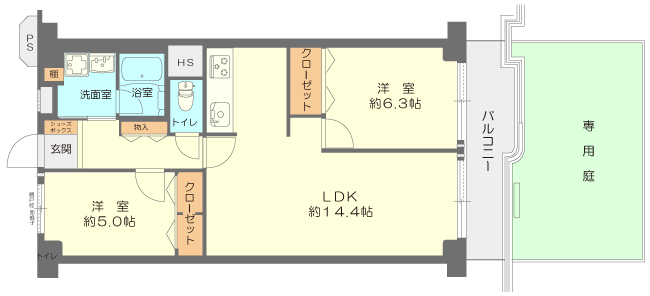 | 備考:南東向き。専用庭・人工芝付き(16.8u 月額使用料600円) 令和7年5月 室内全面改装済み キッチン交換、ユニットバス(浴室乾燥機付)交換、トイレ交換、給湯器交換、建具交換、 全室床材・壁紙張替、間取り変更(3LDK→2LDK) 駐車場(空無:月額13,000円)、駐輪場(空有:月額200円) バイク置場(空無:原付 月額1,000円、250cc未満 月額2,000円、250cc以上 月額3,000円) |