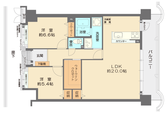 備考:南東向きバルコニー 令和7年10月 室内リフォーム済み クロス貼替、トイレ床クッションフロア貼替、フローリングリペア、洋室2室建具新調、 キッチンガラストップコンロ交換、ハウスクリーニング 敷地内駐車場:平面式月額13,000円(空きなし) バイク置場:月額300〜700円(空きなし) 駐輪場(自転車):月額100〜300円(空きあり) ペット不可 室内の写真 [玄関、シューズボックス、洋室 約5.4帖、洋室 約6.6帖、ウォークインクローゼット、 トイレ、洗面室、洗面台、洗濯機置場、浴室、対面型キッチン、キッチン、ガスコンロ、 リビング(LDK 約20帖)、リビング収納、バルコニー、バルコニー、バルコニーからの眺望、 共用廊下側室外機置場、玄関前廊下からの眺望] |