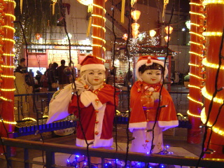 ↑今年も神戸ルミナリエを見に行くことができました(笑) 神戸は寒かったけど・・・ルミナリエは毎年のことですが、 本当に綺麗〜♪で眩しかった!です(^O^) 今年は〜何とも珍しい!(?)神戸南京町(中華街)の クリスマスの様子も写真に撮ってきました♪♪ 中国人形?のサンタが・・・いい味出してますよ!!(笑)