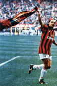 | ジュゼッペ・メアッツァでの32節 A.CミランVSフィオレンティーナ戦で個人として 2年連続のスクデットを獲得するA.Cミランは15回目のスクデット バッジョは45分にジョージ・ウェアの得たPKを決め彼にしては珍しく コーナーフラッグでユニフォームを高く掲げる派手なパフォーマンスをする このシーズンはカペッロ監督の考えるシステムにより先発出場も少なくベンチに いる時間が多くなっていた |