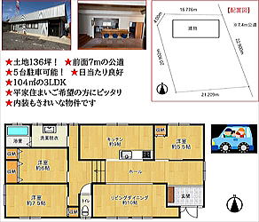 ◆土地136坪!◆前面7mの公道◆5第駐車可能!