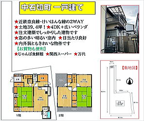 ◆近鉄近鉄奈良線・けいはんな線の2WAY! ★土地39.4坪!4DK+広いベランダ